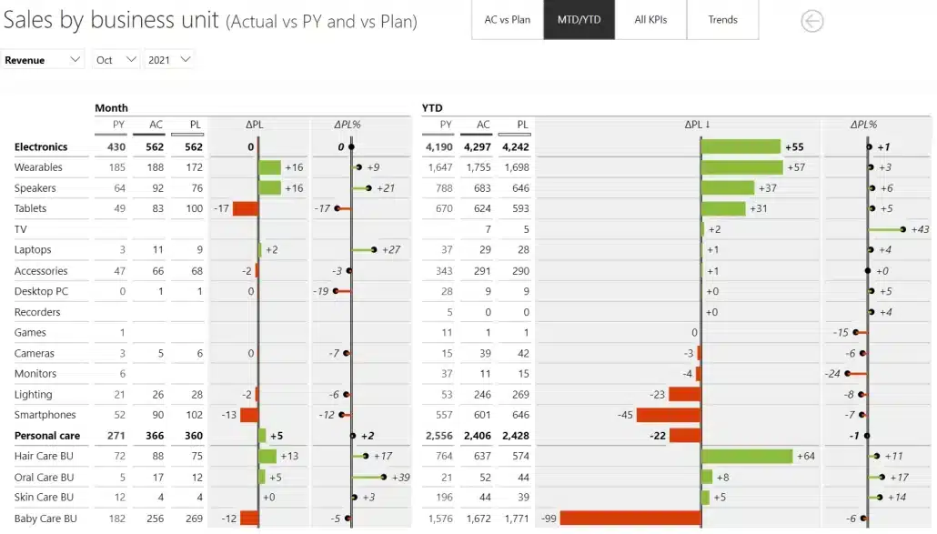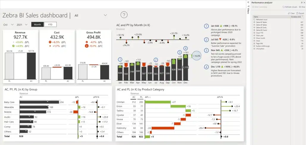 To put things into perspective, let's take a look at a Zebra BI landing page report and run another performance analysis here. To create a similar report using Zebra BI visuals, start your free trial today.