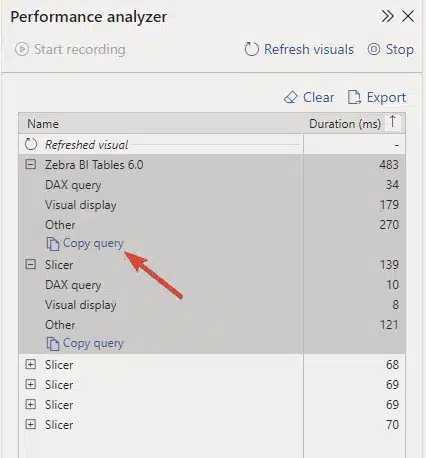 1. Copy the query: Click 'Copy query' for the specific visual you want to analyze in detail.Ā