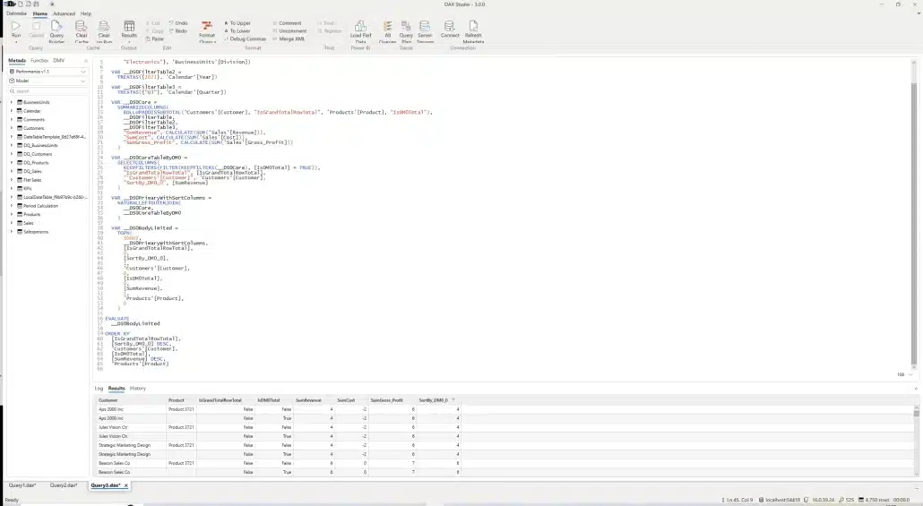 This tool provides advanced features like query performance metrics, query execution plans, and detailed insights into how your calculations are being processed. This makes it an invaluable resource for diagnosing slow-performing measures and optimizing complex DAX formulas.