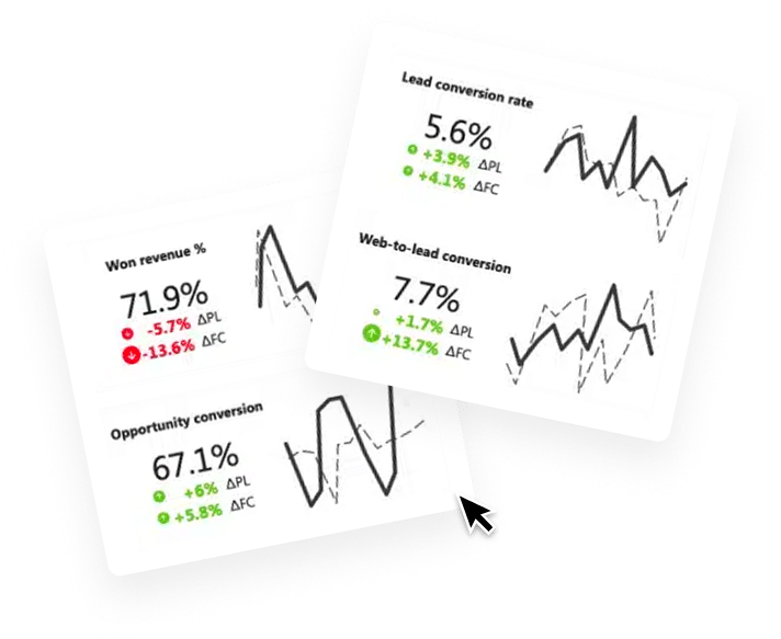 Stay on top of operational KPIs in real time, from sales to productivity metrics. Drill down into product, region, or customer performance, align with finance through shared templates, and act quickly on opportunities or risks.