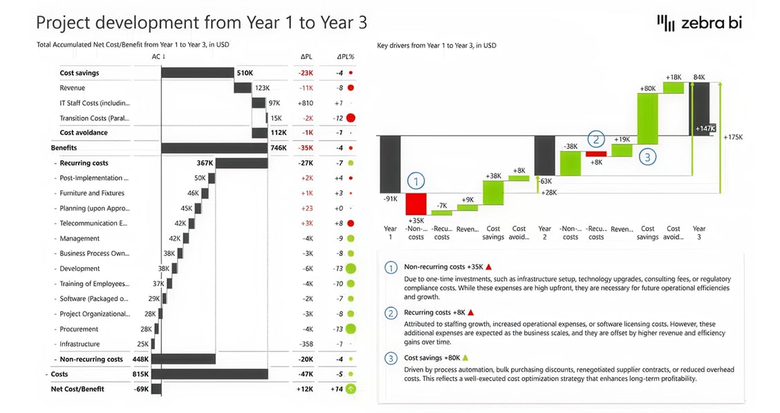 Simplify multi-version reporting and scenario analysis with ready-to-use visuals.