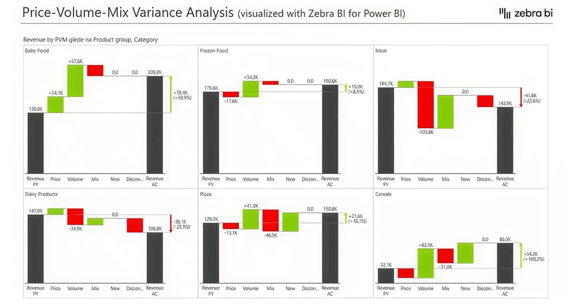 8. Price-Volume-Mix Analysis: Examine the relationships and impacts of price changes, volume shifts, and mix variations on profitability.