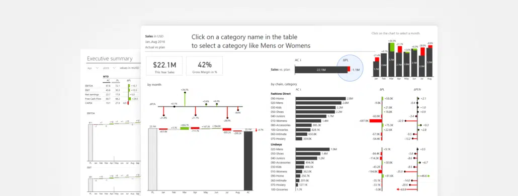 With Zebra BI Tables you can create spectacular sales dashboards, income statements (P&L), cost vs. budget, and s other business reports in Power BI with a few simple clicks.