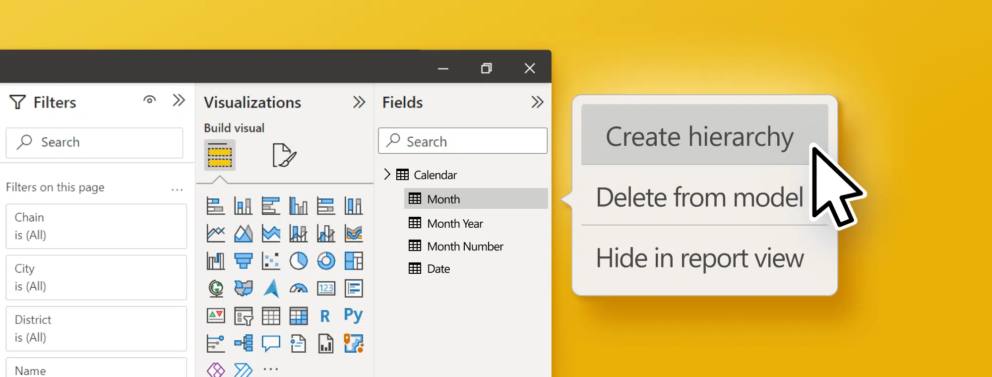 Power BI allows you to customize your date hierarchy to suit your business needs. There are several customization options available, including: