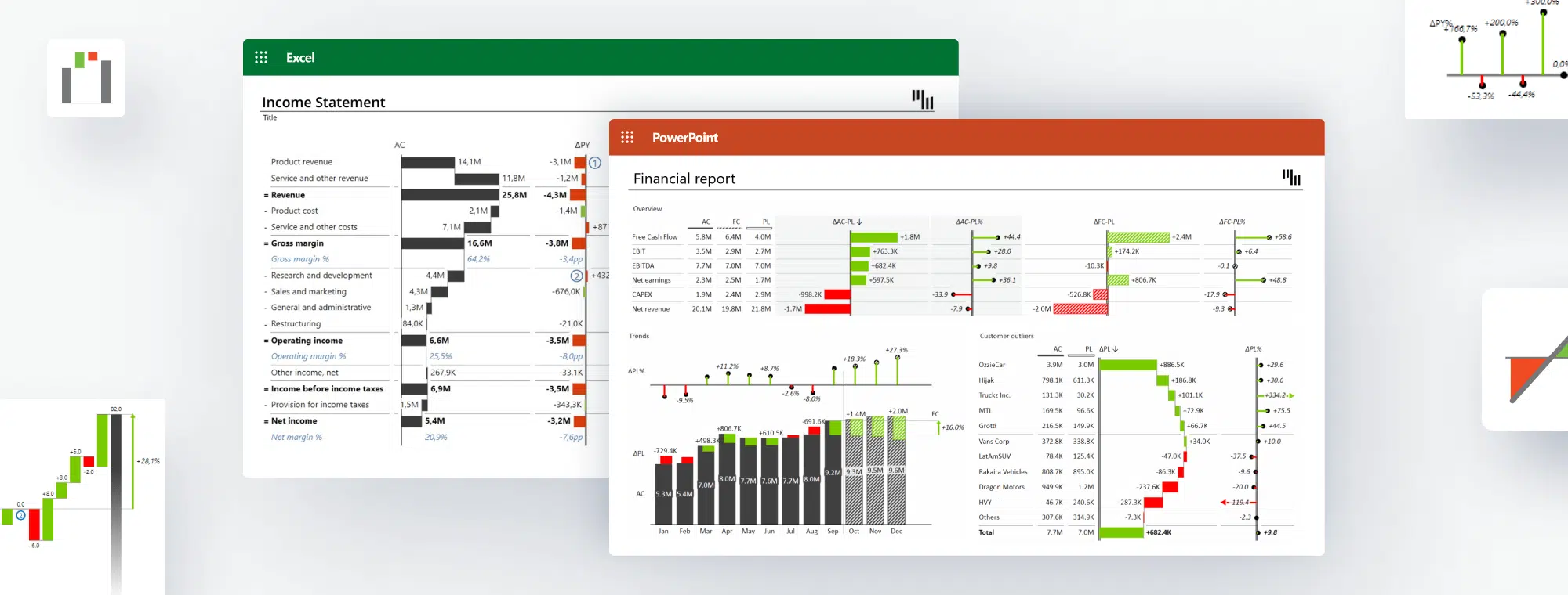 Because of both platforms' flexibility, millions of business users use them globally daily. However, this can often result in poor data visualization practices like illegible tables and fancy, colorful charts. Stop wasting hours creating reports and presentations that don't deliver insights immediately.