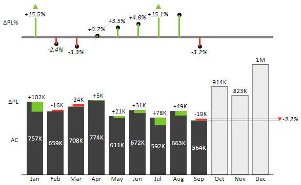 The end result is a rich visualization that clearly shows how well you've performed against your previous year and plan. A single chart gives you an overview of your performance so far and enables you to look to the future.
