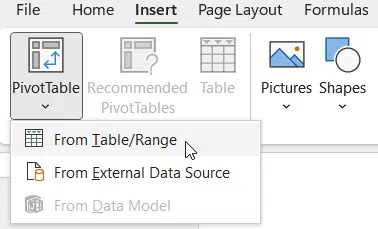 We will synchronize the PivotTables by using a slicer. Click on one of the PivotTables, go to the Insert tab, and click Slicer. This will open a window with all the data fields available for your Pivot Table.