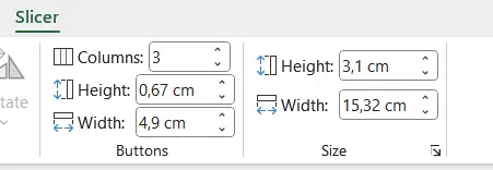 What we really want, however, is to design this slicer as a horizontal one, like the one we saw in our sample dashboard. To do this, click on the slicer to have it show the Slicer tab on your toolbar. Here, you can adjust various slicer aspects. Start by setting the number of columns to 3.