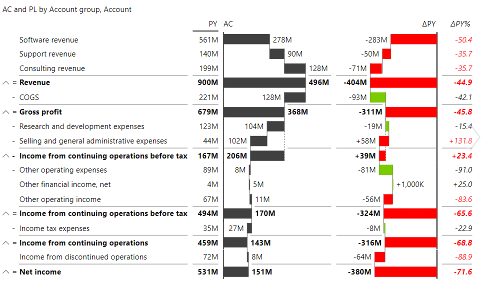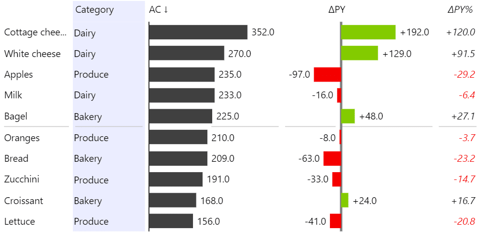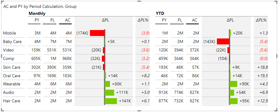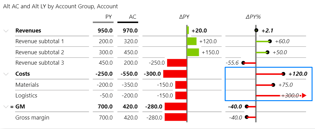 - Added support for multiple comparisons in all charts (e.g. Actual vs PY vs Plan or Actual&Forecast vs PY vs Plan)
