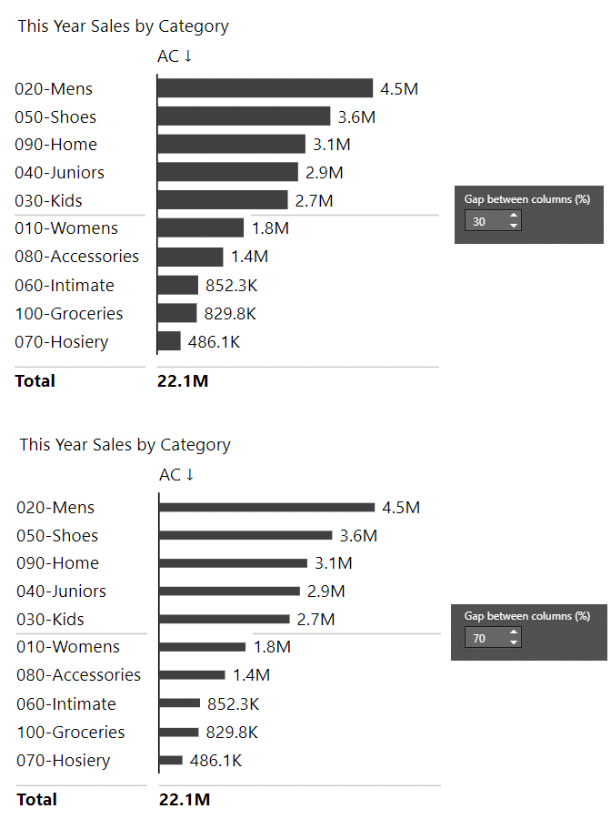 - Added a new setting 'Lighten when overlapped' under Design to improve readability of overlapped column charts