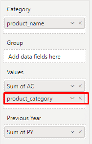 Add a measure with values that represent calculations from the Power BI Model in the Category class. Row-level calculation values in the Category class should have a 1:1 association with Category values.
