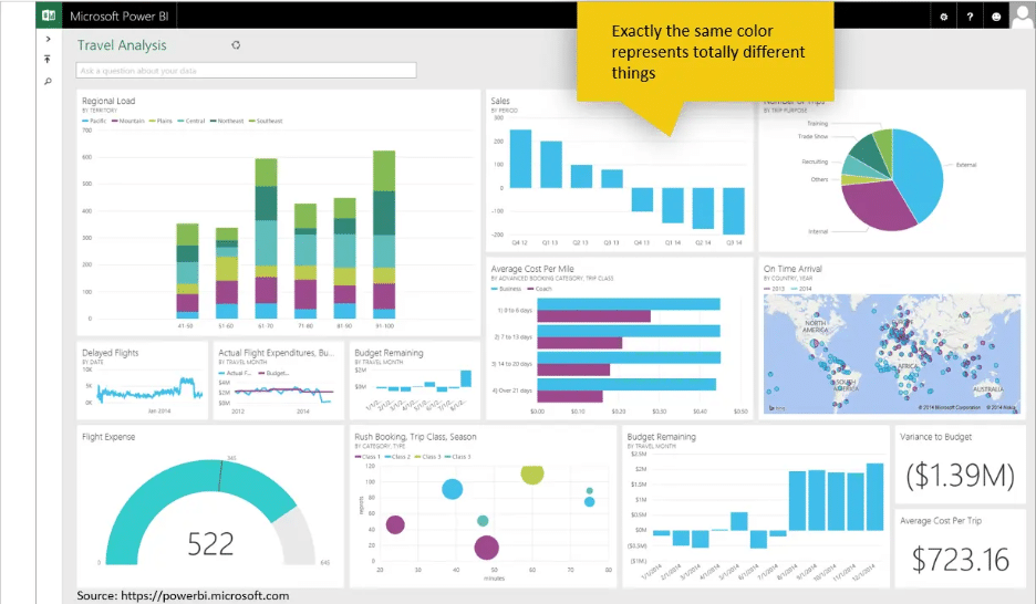 Understanding the scope and the volume of every data category here is just completely impossible unless you take the time and hover with your mouse over every little section to read the numbers. Maybe then you'll understand what's going on. But you can't expect that from your end-users. They won't spend unlimited time just trying to understand the data, clicking and waiting for tooltips to show up. They won't examine every little pixel on your dashboards, so it should be much easier to understand.