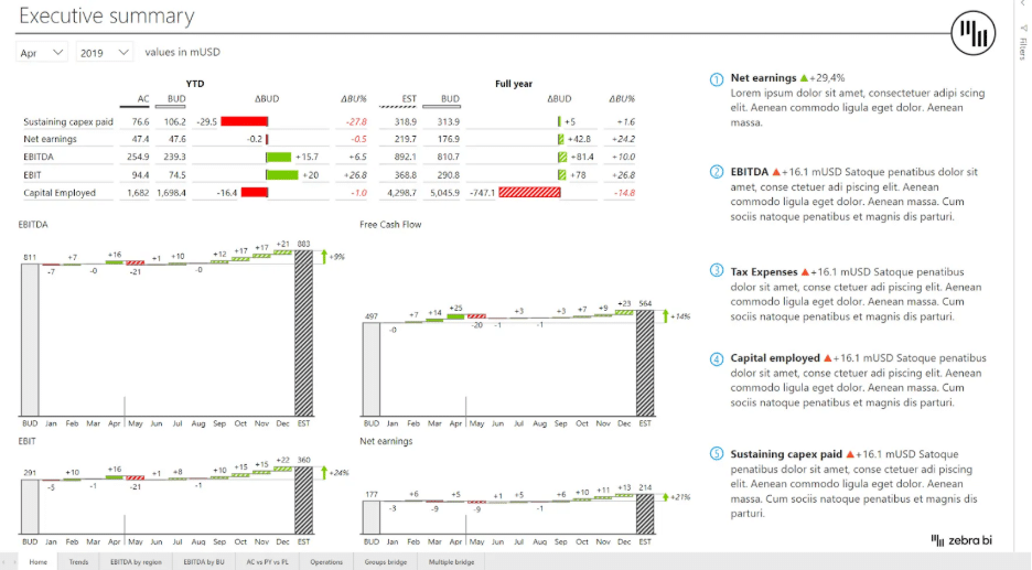 Zebra BI transforms Power BI dashboards into a professional-grade business reporting platform your entire company will benefit from:Â