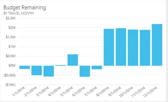 You can probably see why this is problematic. Each category is the same size as all the others, even though some display categories are 10 times as large as the others. One chart shows a million, while another shows just 49,000. However, when there is a gap between the actuals and the plan in a category that generates millions it is much more concerning than a gap in a category that generates thousands.