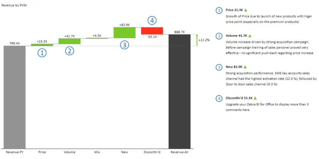 Create a next-level Price-Volume-Mix Variance Analysis in Excel & impress your C-levels with your extraordinary skills. Get Zebra BI for Office to your Excel for FREE & automatically receive an instructional file that will help you get started.