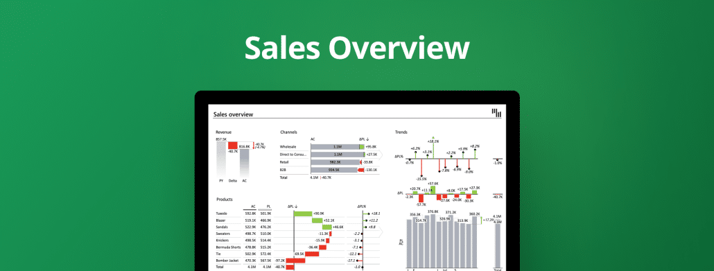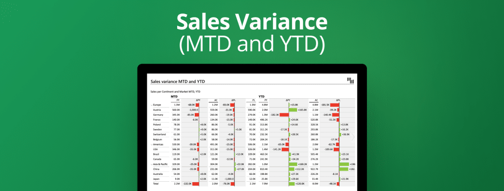 Use this template to visualize your sales performance with multiple levels in Excel. By using expand and collapse get an overview of data per continent or country. Get more understanding by comparing the actual to the plan and the previous year.