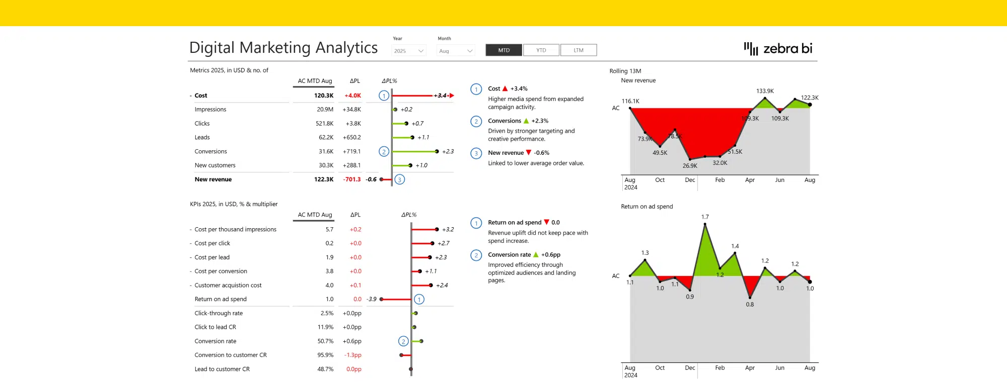 Awesome reports. Lots of tricks inside, thanks to the Power BI and the Zebra BI visuals.