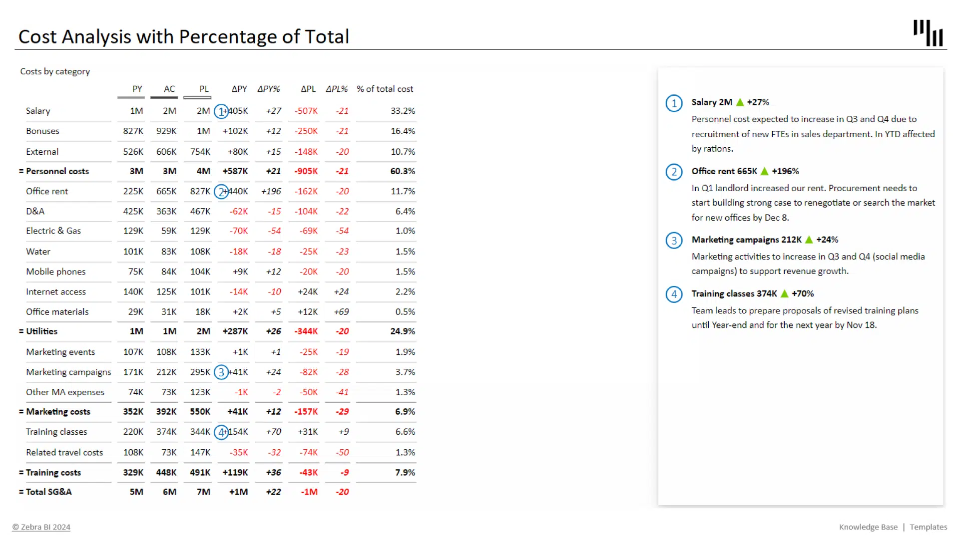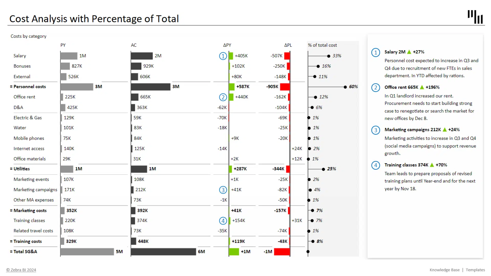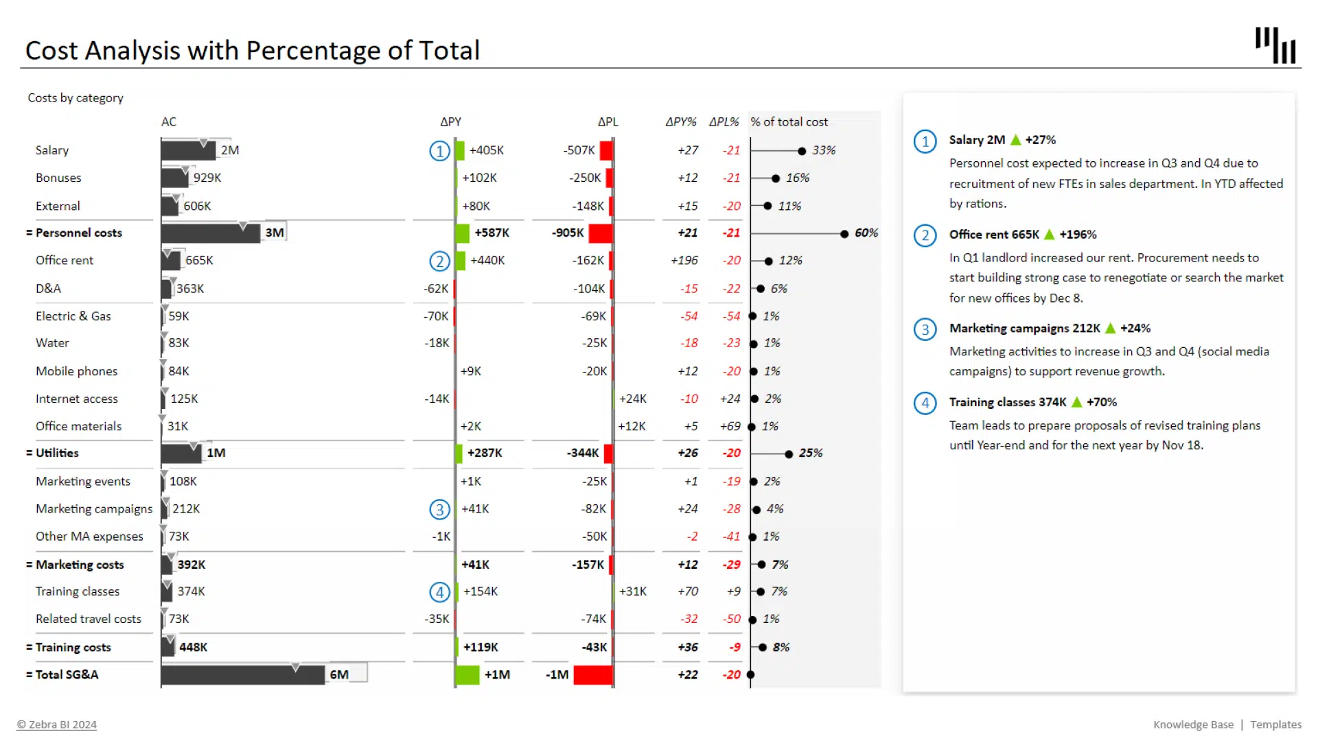 Cost Analysis Excel Template with Percentage of Total