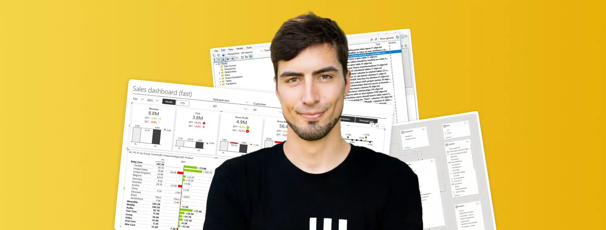 You’ll learn how to speed up slow dashboards, optimize your data model using the star schema, streamline report layouts with fewer visuals, and use modern tools like Performance Analyzer, Tabular Editor, and Semantic Link Labs to monitor and improve performance.